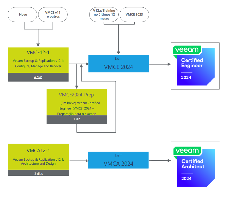 Como um Veeam Authorized Education Center, a TD SYNNEX oferece treinamento para os caminhos de certificação Veeam Certified Engineer e Veeam Certified Architect.
